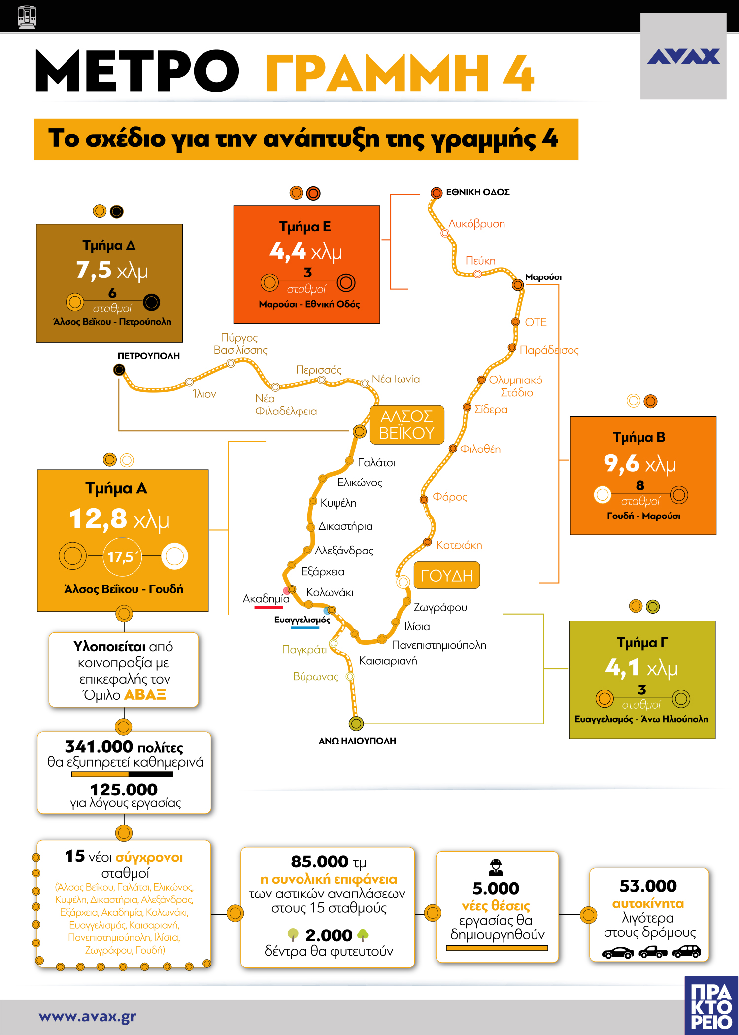 Στο Infographic που ακολουθεί περιλαμβάνονται ορισμένα από τα κύρια χαρακτηριστικά του σχεδίου για τη Γραμμή 4 του μετρό
