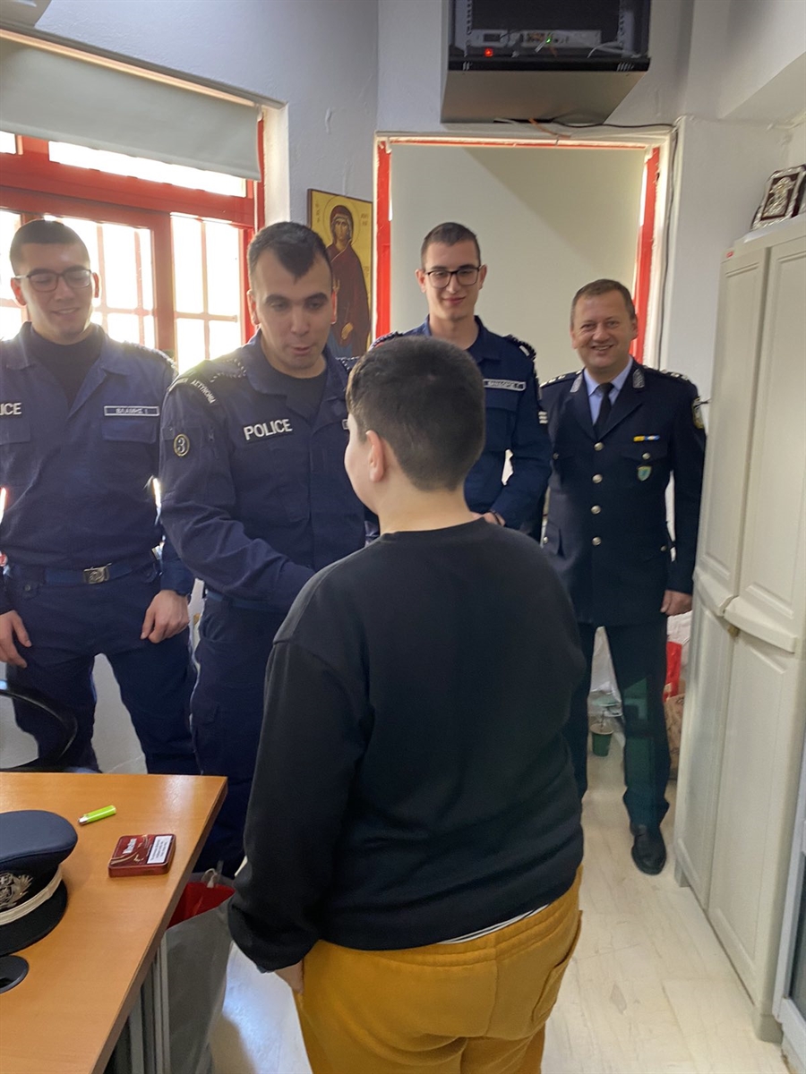 Το 1ο Ειδικό Δημοτικό Σχολείο Ρεθύμνου υποδέχθηκε σήμερα, Πέμπτη, τους δόκιμους αστυνομικούς μαζί με τον Αστυνόμο κ. Λιοδάκη, προκειμένου να συνεισφέρουν, ενόψει του Πάσχα, στις ανάγκες των μαθητών με χρήματα που συγκέντρωσαν οι φοιτητές της σχολής Δοκίμων Αστυνομικών από το υστέρημά τους.