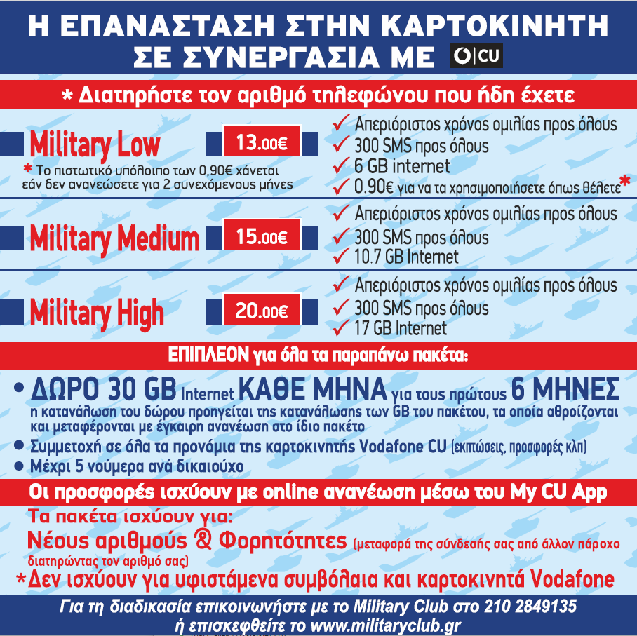 Εικόνα 11:38 | 02/04/2024 Καταργήστε τις μακροχρόνιες δεσμεύσεις των συμβολαίων με τα πακέτα καρτοκινητής Military Mobile. MILITARY CLUB