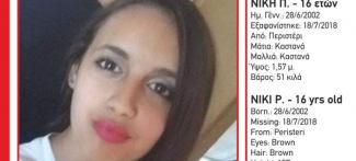 Στις 18/07/2018 τις πρώτες πρωινές ώρες, εξαφανίστηκε η Νίκη Π., 16 ετών από την περιοχή του Περιστερίου.