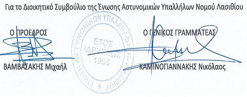 Ανακοίνωση της Ένωσης Αστυνομικών Λασιθίου: