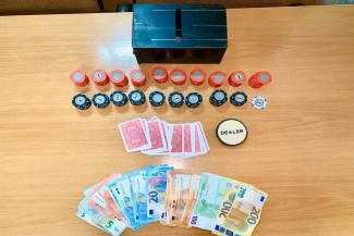 Ειδικότερα, ένας 37χρονος συντόνιζε ως « dealer » τη διεξαγωγή του τυχερού παιγνίου « TEXAS HOLD ’ EM » και συμμετείχαν σε αυτό μία 69χρονη υπεύθυνη του καταστήματος, καθώς και οκτώ παίκτες-πελάτες.