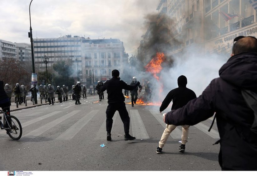 Νέος γύρος επεισοδίων ξέσπασε στο κέντρο της Αθήνας, προκαλώντας τον απότομο τερματισμό της μεγάλης διαδήλωσης που βρισκόταν σε εξέλιξη στο πλαίσιο της γενικής απεργίας για το σιδηροδρομικό δυστύχημα στα Τέμπη.