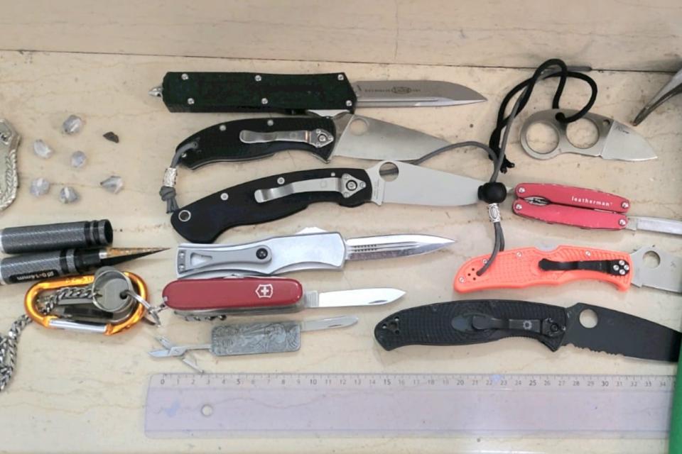 Οι συνάδελφοι αφού είδαν ότι ο αλλοδαπός ένοικος του ξενοδοχείου δεν είχε τίποτε σοβαρό, έκαναν νόμιμο έλεγχο και στην κατοχή του βρέθηκε ένα μικρό οπλοστάσιο αποτελούμενο απο διάφορα είδη μαχαιριών όλων των μεγεθών!!!! (Όλα φονικά εργαλεία).