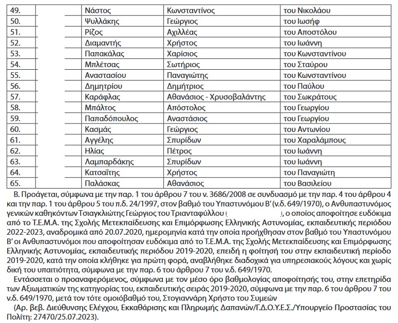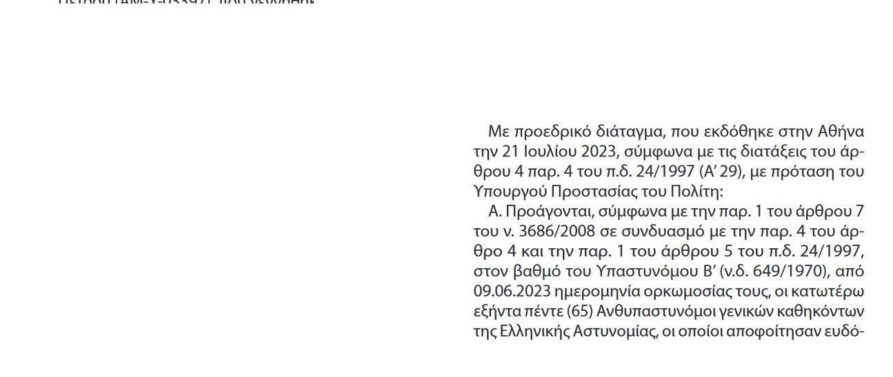 Παραθέτουμε το ΦΕΚ με όλα τα προαχθέντα στελέχη. Το Policenet.gr τους εύχεται καλή συνέχεια στη σταδιοδρομία τους: