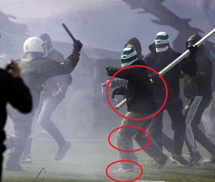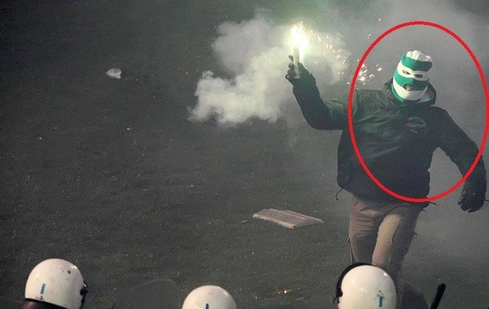 Μετά τον «καθαρισμό» του οπτικουακουστικού υλικού στη Διεύθυνση Εγκληματολογικών Ερευνών, οι αστυνομικοί της Υποδιεύθυνσης Αντιμετώπισης Βίας στους Αθλητικούς Χώρους της Διεύθυνσης Ασφάλειας Αττικής, ταυτοποίησαν δύο από τους δράστες των επεισοδίων του ντέρμπι. Πρόκειται για έναν 36χρονο, ο οποίος είχε εισέλθει στον αγωνιστικό χώρο πριν την έναρξη του αγώνα κρατώντας στο δεξί του χέρι μεταλλική αλυσίδα και έναν 26χρονο, ο οποίος επίσης είχε εισέλθει στον αγωνιστικό χώρο και είχε καλυμμένα πλήρως τα χαρακτηριστικά του προσώπου του με κουκούλα τύπου full face χρώματος πράσινου λευκού (ριγέ) και κρατούσε στο δεξί του χέρι φωτοβολίδα.