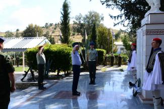 Κατά την επίσκεψή του στην ΕΛΔΥΚ ενημερώθηκε για το έργο και την αποστολή της Μονάδας, απευθύνθηκε στο προσωπικό της Δύναμης τονίζοντας τη σημασία αυτής στην προάσπιση της ασφάλειας και τη διατήρηση της σταθερότητας της περιοχής, ενώ στη συνέχεια κατέθεσε στεφάνι στο Μνημείο Πεσόντων και Αγνοουμένων Ελλήνων Αγωνιστών στην Κύπρο.