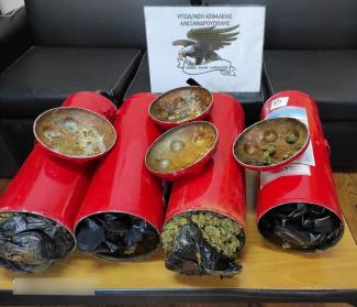 Συγκεκριμένα, κατά την έρευνα που διενεργήθηκε με τη συνδρομή του αστυνομικού σκύλου ανίχνευσης ναρκωτικών “Laika”, βρέθηκαν σε βοηθητικούς αποθηκευτικούς χώρους του τράκτορα, τέσσερις πυροσβεστήρες οι οποίοι περιείχαν στο εσωτερικό τους τέσσερις νάιλον συσκευασίες με ακατέργαστη κάνναβη, συνολικού βάρους 8.210 γραμμαρίων.