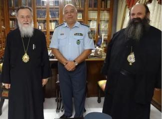 Κατά την διάρκεια της επισκέψεως, αφού συνεχάρησαν τον κ. Αστυνομικό Διευθυντή από καρδιάς ο Σεβ. Ποιμενάρχης μας και ο Βοηθός Επίσκοπος για την επάξια προαγωγή του, μέσα σε πολύ θερμό κλίμα ανταλλάχθηκαν απόψεις και συζητήθηκαν θέματα που άπτονται της Τοπικής Κοινωνίας της Κορινθίας καθώς και η διαχρονικά υποδειγματική συνεργασία της Ελληνικής Αστυνομίας με την Ι. Μητρόπολή μας και την Εκκλησία γενικότερα.