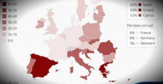 Με βάση, δε, ακριβώς αυτή την ερευνα ο ειδικος της Statista Νιλ ΜακΚάρθι δημιούργησε τον χάρτη που αποτυπώνει την πλήρη εικόνα της διαφθοράς στην Ευρώπη: Τα υψηλότερα ποσοστά – χωρίς να προκαλούν έκπληξη –, της τάξης του 63%, εντοπίζονται στην Ελλάδα και την Ιταλία και τα χαμηλότερα στη Δανία (3%) και στη Γερμανία (6%). Η συνολική εικόνα επιβεβαιώνει, επίσης, πως τα υψηλότερα επίπεδα διαφθοράς στην Ε.Ε. εντοπίζονται στον ευρωπαϊκό νότο.
