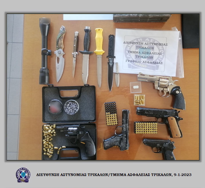 Συνελήφθη, χθες (08-01-2023) το μεσημέρι στα Τρίκαλα, από αστυνομικούς του Τμήματος Ασφάλειας Τρικάλων, -1- ημεδαπός άνδρας, σε βάρος του οποίου σχηματίσθηκε δικογραφία για κλοπές και παράβαση της νομοθεσίας περί όπλων.