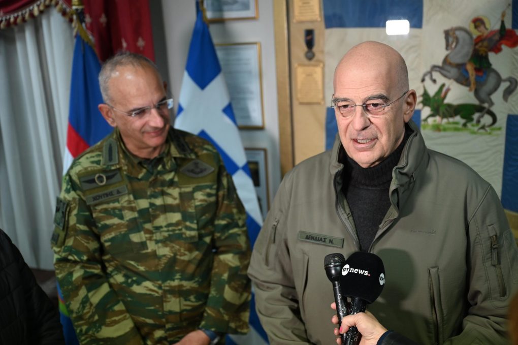 Είχα επίσης τη χαρά με τον Α/ΓΕΕΘΑ Στρατηγό Δημήτριο Χούπη, ο οποίος με συνόδευσε, να συζητήσουμε με τους επιτελείς του Συντάγματος και της Ταξιαρχίας την κατάσταση στην ευρύτερη περιοχή. Θα ήθελα να πω ότι πάντα για μένα είναι μία πολύ μεγάλη χαρά και πολύ μεγάλη τιμή να επισκέπτομαι τα όρια της Επικράτειας της Πατρίδας μας, τα όρια που φρουρούν οι Ένοπλες Δυνάμεις».