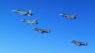 - Τέσσερα μαχητικά αεροσκάφη Rafale σε ρόλο Defensive Counter Air (DCA).