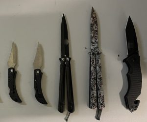 Στο πλαίσιο του ελέγχου βρέθηκαν στην κατοχή των -5- ανηλίκων συνολικά -5- μαχαίρια που κατείχαν, εκ των οποίων, τα δύο μαχαίρια τύπου πεταλούδα συνολικού μήκους -22- και -21- εκατοστών τα οποία κατείχαν δύο 14χρονοι.