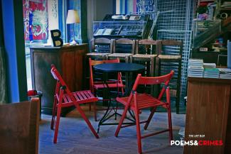 Οι εκδόσεις Γαβριηλίδη δημιούργησαν αυτό το χώρο της πόλης, κάτω από τον τίτλο Art bar Poems ’n Crimes. Ένας χώρος που συνδυάζει τυπογραφείο, βιβλιοπωλείο, μπαρ και χώρο εκδηλώσεων σε ένα πανέμορφο κτίριο του 1850. Πλήθος από βιβλία, σκόρπια χειροποίητα χαρτιά από το Νεπάλ και αναλόγια σε συντροφεύουν στον καφέ σου στο μπαρ του ισογείου. Αν ρίξεις μια ματιά γύρω σου, τότε θα καταλάβεις πως βρίσκεσαι στα «Εγκλήματα». Τα τραπεζάκια του χώρου βρίσκονται μπροστά στις βιβλιοθήκες με τα αστυνομικά βιβλία. Παίρνεις ένα, το διαβάζεις κι αν θέλεις το αγοράζεις. Αν η διάθεσή σου όμως είναι πιο ποιητική ανέβα στον πρώτο, που βρίσκεται και η ποιητική συλλογή. Όσοι ενδιαφέρονται λίγο περισσότερο, ας ακολουθήσουν τη μυρωδιά του μελανιού που θα τους οδηγήσει στον τρίτο όροφο, κατευθείαν στην παραγωγή, στο τυπογραφείο του κτιρίου.