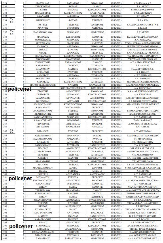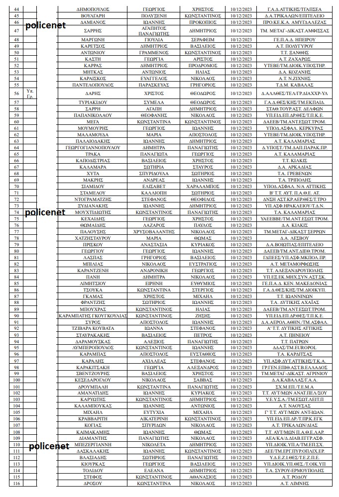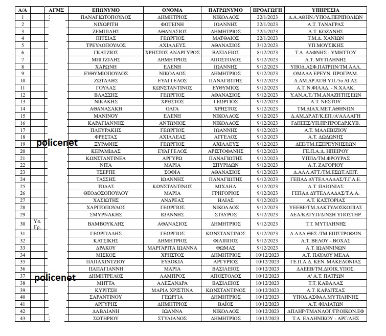 Δείτε τον πίνακα με τους προαχθέντες Αστυνομικούς: