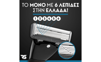Έξι λεπίδες στο μπροστινό μέρος και μια στο πίσω μέρος (τριμερ για τις δύσκολες περιοχές όπως κάτω από την μύτη).