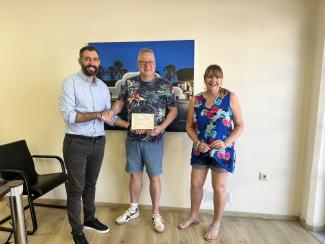Πλατινένια πλακέτα, που αποτελεί την ανώτατη τιμητική διάκριση, απονεμήθηκε από τον Δήμο της Ρόδου σε ζευγάρι Βρετανών τουριστών που έχει επισκεφθεί το νησί πάνω από 100 φορές.
