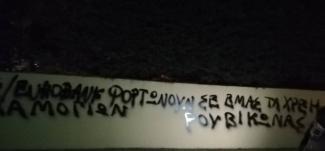 Επίθεση με βαριοπούλες στα γραφεία της Eurobank στη Ν. Ιωνία πραγματοποίησαν μέλη της ομάδας Ρουβίκωνας και ταυτόχρονη παρέμβαση με σπρέι στο σπίτι του Φωκίωνα Καραβία, διευθύνοντα συμβούλου της Eurobank, στην Κηφισιά