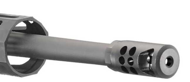 Η κάνη μεσαίου περιγράμματος (.75 "στο στόμιο) διαθέτει ένα υβριδικό χαληνωτήριο (Ruger Precision Rifle® Hybrid Muzzle Brake) για την αποτελεσματική μείωση της ανάκρουσης ενώ ελαχιστοποιεί τον θόρυβο και τα αέρια στις εκάστοτε πλευρές του σκοπευτή.