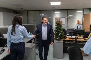 Την Πολιτική και Φυσική ηγεσία της Ελληνικής Αστυνομίας υποδέχθηκε ο Γενικός Αστυνομικός Διευθυντής Αττικής, Υποστράτηγος Ιωάννης Σκούρας, ενώ στη συνέχεια ο κ. Υπουργός, απηύθυνε μέσω ασυρμάτου τις ευχές σε αστυνομικούς που υποδέχτηκαν το 2024 εν ώρα υπηρεσίας: