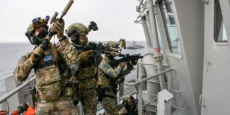Στο πλαίσιο αυτό και υπό τον συντονισμό Στοιχείου Διοίκησης και Ελέγχου Ειδικών Επιχειρήσεων (Special Operations Command and Control Element – SOCCE) της Διοίκησης Ειδικού Πολέμου του ΓΕΕΘΑ, πραγματοποιήθηκε στο Μυρτώο Πέλαγος άσκηση εκτέλεσης μη συναινετικής νηοψίας στο Πλοίο Γενικής Υποστήριξης ΑΤΛΑΣ Ι, το οποίο προσομοίωσε πλοίο που έφερε ύποπτο φορτίο, με την συμμετοχή του Ταχέως Περιπολικού Κατευθυνόμενων Βλημάτων (ΤΠΚ) ΡΟΥΣΣΕΝ, στο οποίο επέβαινε Ομάδα Ανορθόδοξου Πολέμου της Διοίκησης Υποβρυχίων Καταστροφών (ΔΥΚ), ενός Σκάφους Ανορθόδοξου Πολέμου/Ταχείας Μεταφοράς (ΣΑΠ/ΤΜ) της ΔΥΚ και ενός Ελικοπτέρου (Ε/Π) της Διοίκησης Αεροπορίας Ναυτικού.
