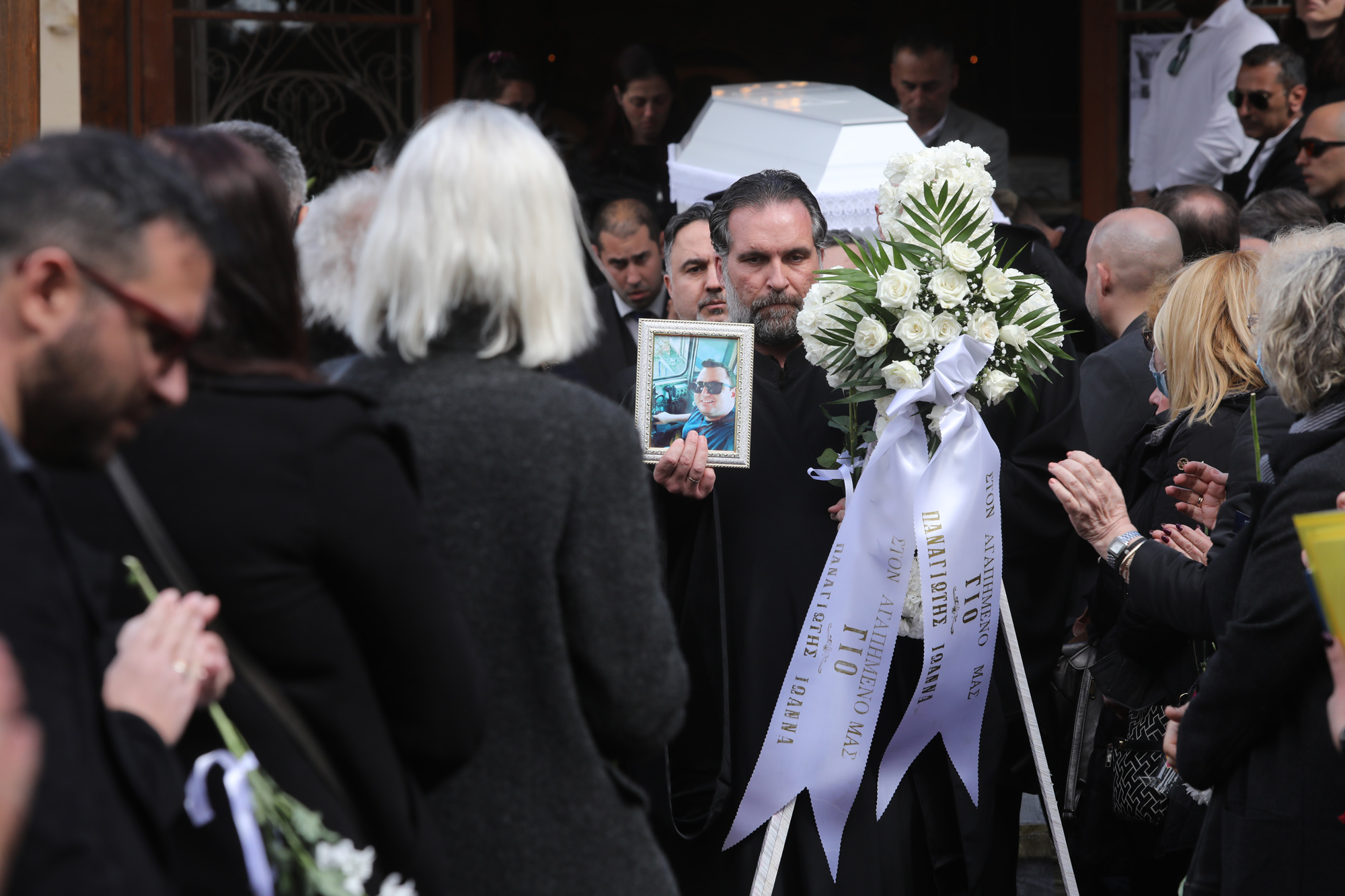 Στην κηδεία παραβρέθηκαν πλήθος κόσμου και οι συντετριμμένοι γονείς, συγγενείς και οι φίλοι, αποχαιρέτησαν τον άτυχο νέο με λευκά τριαντάφυλλα στα χέρια.