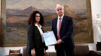 Τον πίνακα με τα επίσημα εκλογικά αποτελέσματα της 21ης Μαΐου, επέδωσε στον Πρόεδρο της Βουλής, Κων. Τασούλα, η υπηρεσιακή υπουργός Εσωτερικών, Καλλιόπη Σπανού.