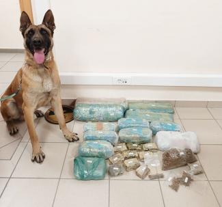 Ειδικότερα, μετά από κατάλληλη αξιολόγηση και αξιοποίηση στοιχείων και δεδομένων, πραγματοποιήθηκαν έρευνες σε οικίες των συλληφθέντων σε περιοχές της Σάμου, παρουσία δικαστικού λειτουργού και με τη συνδρομή αστυνομικού σκύλου, στο πλαίσιο των οποίων βρέθηκαν σε χώρους αυτών και κατασχέθηκαν: