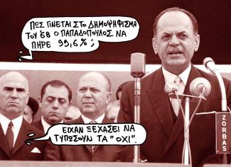 Στο δημοψήφισμα οι πολίτες σύρθηκαν με το ζόρι ουσιαστικά στις κάλπες και με το «πειραγμένο» ποσοστό 99,6% ψήφισαν υπέρ του «συντάγματος Παπαδόπουλου».