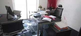 Σύμφωνα με μαρτυρίες, στις 8 το πρωί, μπήκαν στο κτίριο 15 άτομα με βαριοπούλες. Ο φύλακας ανέφερε ότι τα μέλη της ομάδας φορούσαν κράνη, τον ακινητοποίησαν αλλά δεν τον χτύπησαν. Αφού κατέστρεψαν κυριολεκτικά τα γραφεία (λάπτοπ, κάμερες, ηλεκτρονικός εξοπλισμός, τζάμια αλλά και έγγραφα) έγραψαν συνθήματα στους τοίχους. "Όχι στα μνημόνια" κ.α.