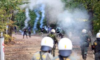 Επίθεση με πέτρες, ξύλα και μάχες με τις δυνάμεις της αστυνομίας... Εξακολουθούν να βρίσκονται στο αστυνομικό τμήμα Πολυγύρου, περισσότερα από 70 άτομα που προσήχθησαν μετά την πορεία στον Κάκκαβο. Όλοι είχαν μπει σε ένα λεωφορείο για να αποχωρήσουν μετά τα επεισόδια, με την αστυνομία όμως να τους προλαβαίνει. Σύμφωνα με εκπρόσωπο της αστυνομίας, πέταξαν πέτρες στους αστυνομικούς, απωθήθηκαν με δακρυγόνα και στη συνέχεια άναψαν φωτιές με αποτέλεσμα η αστυνομία να τους κυνηγήσει και να τους ακινητοποιήσει στο λεωφορείο όπου είχαν μπει. Λίγη ώρα αργότερα, οι δρόμοι της περιοχής θύμιζαν βομβαρδισμένο τοπίο...