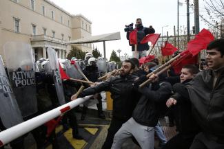 Ένταση επικράτησε στο Σύνταγμα, μπροστά από τη Βουλή, ανάμεσα σε φοιτητές που συμμετέχουν στο εκπαιδευτικό συλλαλητήριο και σε αστυνομικές δυνάμεις.