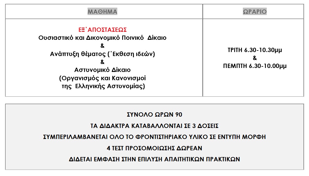 (iv) Αστυνομικό Δίκαιο (Οργανισμός και Κανονισμοί της Ελληνικής Αστυνομίας).