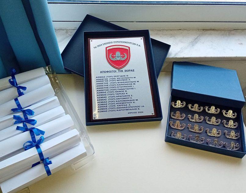 Την Παρασκευή 12 Απριλίου 2024, πραγματοποιήθηκε στο Κέντρο Εκπαίδευσης Στρατευσίμων & Μετεκπαίδευσης (ΚΕΣΜ) Σμηναρχίας Τεχνικής Εκπαίδευσης (123ΣΤΕ), στην Αεροπορική Βάση Δεκέλειας, η τελετή αποφοίτησης των σπουδαστών της 1ης Εκπαιδευτικής Σειράς του Σχολείου Πυροτεχνουργών Πολεμικής Αεροπορίας (ΠΑ) για το έτος 2024.