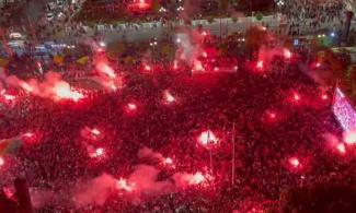 Μόλις ακούστηκε το τελευταίο σφύριγμα του διαιτητή, ο Πειραιάς «κάηκε»! Οι φίλοι του Ολυμπιακού που βρέθηκαν σε κεντρικά σημεία της πόλης έκαναν τη νύχτα μέρα, με τα καπνογόνα που άναψαν.