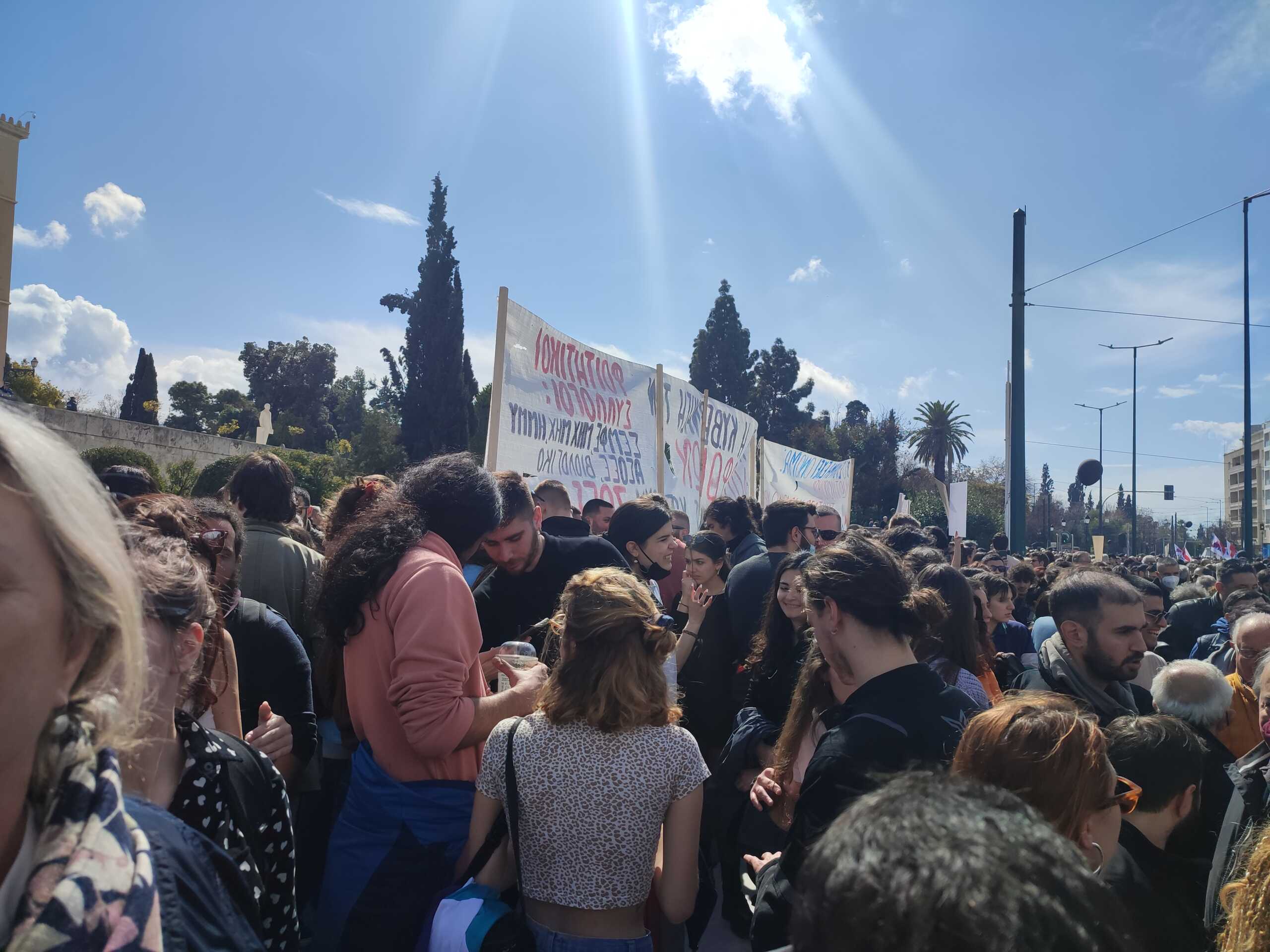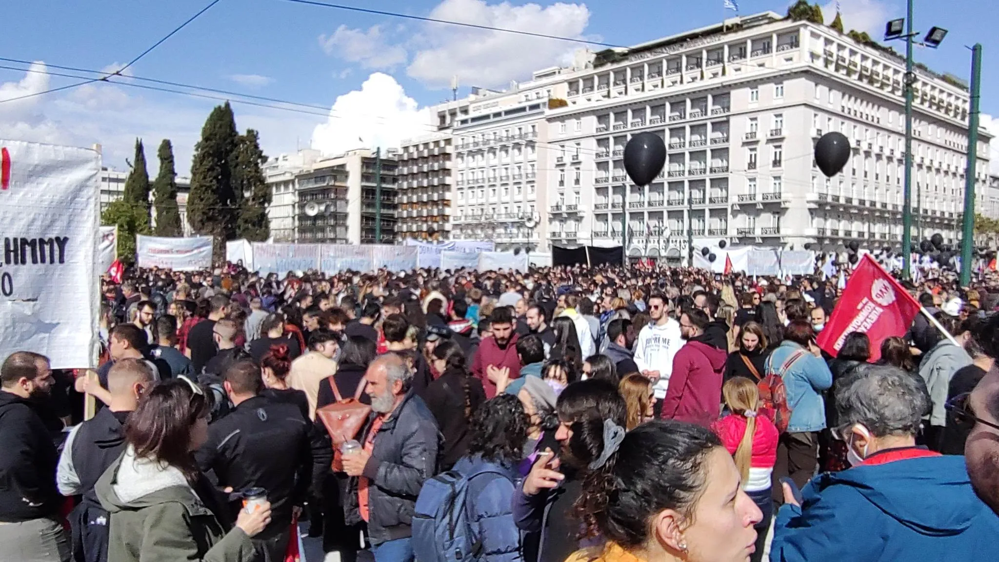 Διαδηλωτές όλων των ηλικιών συμμετέχουν στη συγκέντρωση για την τραγωδία στα Τέμπη που έχει καλέσει το ΠΑΜΕ (που έχει το μεγαλύτερο μπλοκ), ενώ σε συγκέντρωση καλεί και ο ΣΥΡΙΖΑ και άλλες συλλογικότητες.