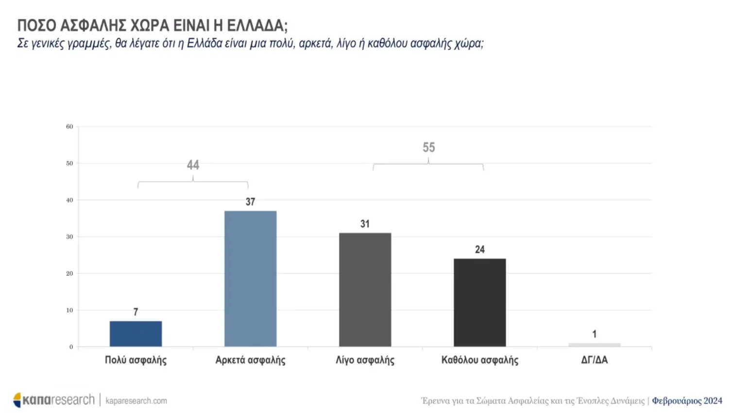 Το αίσθημα της ασφάλειας και η εικόνα των Σωμάτων Ασφαλείας και των Ενόπλων Δυνάμεων αξιολογήθηκε μέσα από την έρευνα της Κάπα Research, με αφορμή τη συμπλήρωση των 50 ετών από τη Μεταπολίτευση.