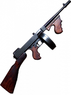 Το όπλο αυτό, το Thomson M1921, ήταν που έγραψε ιστορία στα χέρια των συμμοριών που λυμαίνονταν τις ΗΠΑ στη δεκαετία του 1920 και 1930, εξαιτίας της τρομακτικής του ταχυβολίας και αντοχής. Το όπλο είχε ταχυβολία 700 φυσιγγίων ανά λεπτό. Μπορούσε να “ρίξει” μια γεμιστήρα 100 φυσιγγίων σε 1,5 δευτερόλεπτα! Παρήχθησαν διάφορες, στρατιωτικές εκδόσεις, σε διάφορα διαμετρήματα, με συνηθέστερη τη Μ1928, στο διαμέτρημα των 0,45in (11,23 χλστ.).