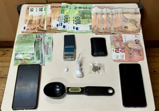 Στην κατοχή του 26χρονου βρέθηκε και κατασχέθηκε συσκευασία (φιξάκι) κοκαΐνης και χρηματικό ποσό 60 ευρώ, ενώ σε έλεγχο στον 25χρονο και έρευνα στην οικία του και εξωτερικούς χώρους που χρησιμοποιεί, βρέθηκαν επιμελώς κρυμμένα και κατασχέθηκαν: