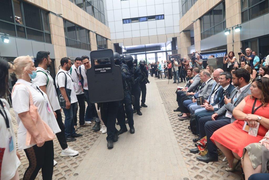 Με την έφοδο της Ομάδας Πρόληψης Καταστολής Εγκληματικότητας (ΟΠΚΕ) και τη σύλληψη trafficker, κατά τη διάρκεια «Επίδειξης Μόδας», όπου για πρώτη φορά παγκοσμίως συμμετείχαν αναγνωρισμένοι πρόσφυγες, ολοκληρώθηκε εχθές, Παρασκευή 24 Μαΐου, η τελευταία πράξη της επιτυχημένης διεθνούς άσκησης «Μέδουσα 2024», στον προαύλιο χώρο του Υπουργείου Μετανάστευσης και Ασύλου.