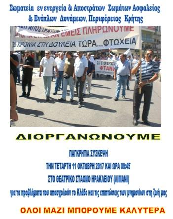 Πέμπτη, 12 Οκτωβρίου, 2017 Τα Σωματεία εν Ενεργεία και Αποστράτων Σωμάτων Ασφαλείας καθώς και των Αποστράτων Ενόπλων Δυνάμεων Περιφέρειας Κρήτης