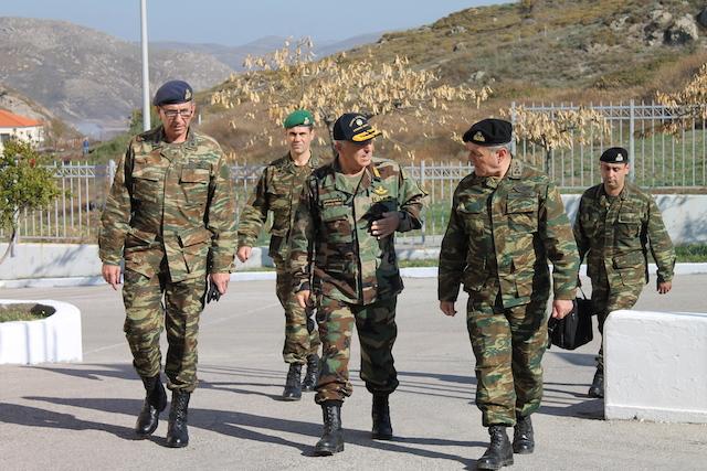 Ο Αρχηγός ΓΕΕΘΑ Ναύαρχος Ευάγγελος Αποστολάκης ΠΝ, συνοδευόμενος από τον Αρχηγό ΓΕΣ, Αντιστράτηγο Βασίλειο Τελλίδη,