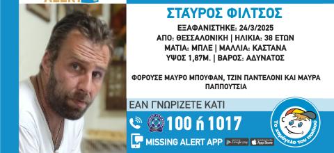 Ο Αλέξιος Τσικόπουλος, 33 ετών, εξαφανίστηκε από το σπίτι του, στο Ηράκλειο Κρήτης, το πρωί της 07/12/25. Το αυτοκίνητό του