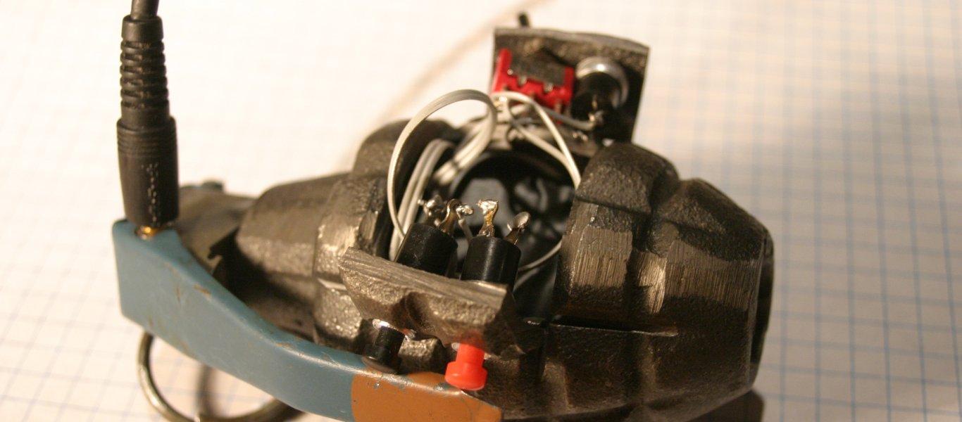 Ένας άνδρας παρέα με ένα μικρό παιδί που πιθανότατα να είναι ο γιος του, τεμαχίζουν χειροβομβίδες.