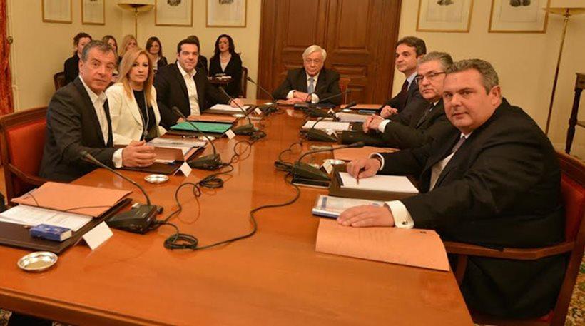 Έπειτα από οκτώ ώρες ολοκληρώθηκε η μαραθώνια σύσκεψη των πολιτικών αρχηγών με τον Πρόεδρο...