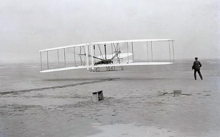 1903: Στις 10:35 π.μ. στη Βόρειο Καρολίνα πραγματοποιείται από τους αδελφούς Όρβιλ και Γουίλμπορ Ράιτ η πρώτη πτήση