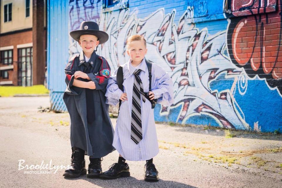 Το policenet.gr σας παρουσιάζει την παρακάτω εικόνα που απεικονίζει δύο δίδυμα αδέρφια να φορούν τα ρούχα του μπαμπά τους που