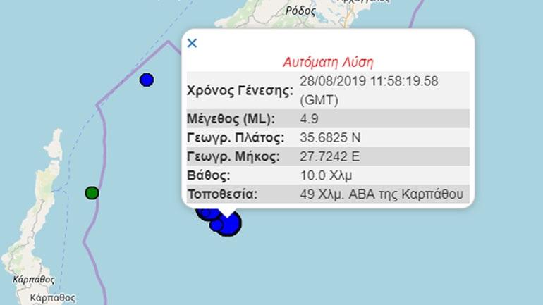 Σεισμική δόνηση μεγέθους 4,9 βαθμών της κλίμακας Ρίχτερ