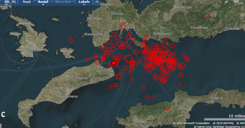 Ισχυρός μετασεισμός μεγέθους 4,6 βαθμών της κλίμακας Ρίχτερ κατέγραψε στη θαλάσσια περιοχή της Κω, στις 20:08...